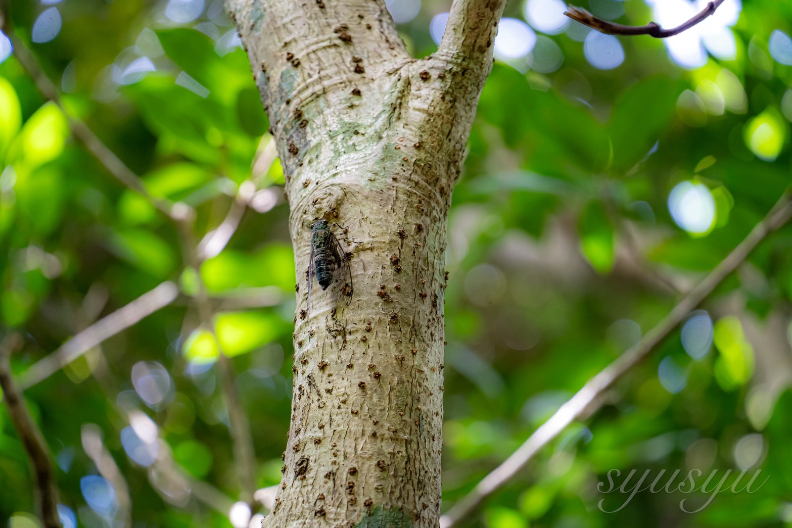 これはアブラゼミにそっくりなのだが、リュウキュウアブラゼミという別種。鳴き声も声色自体は普通のアブラゼミに似ているのだが、リズムが違う。