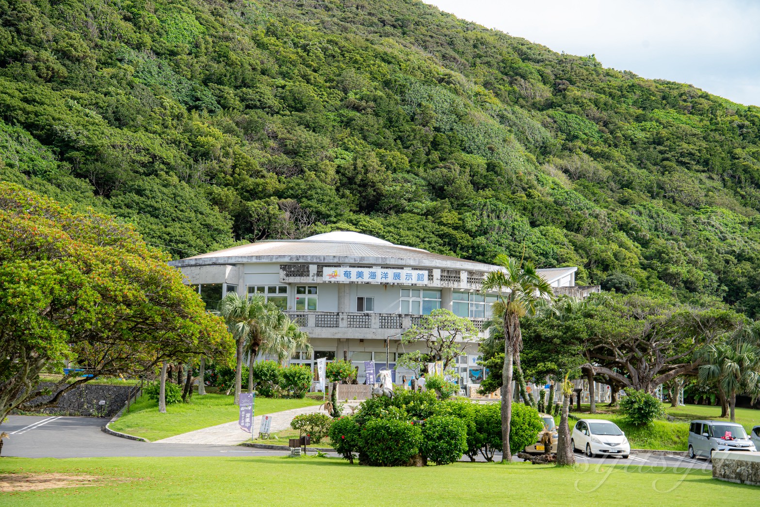 山の麓にある奄美海洋展示館。入館料は700円でクレジットカードなど各種キャッシュレスも使えた。