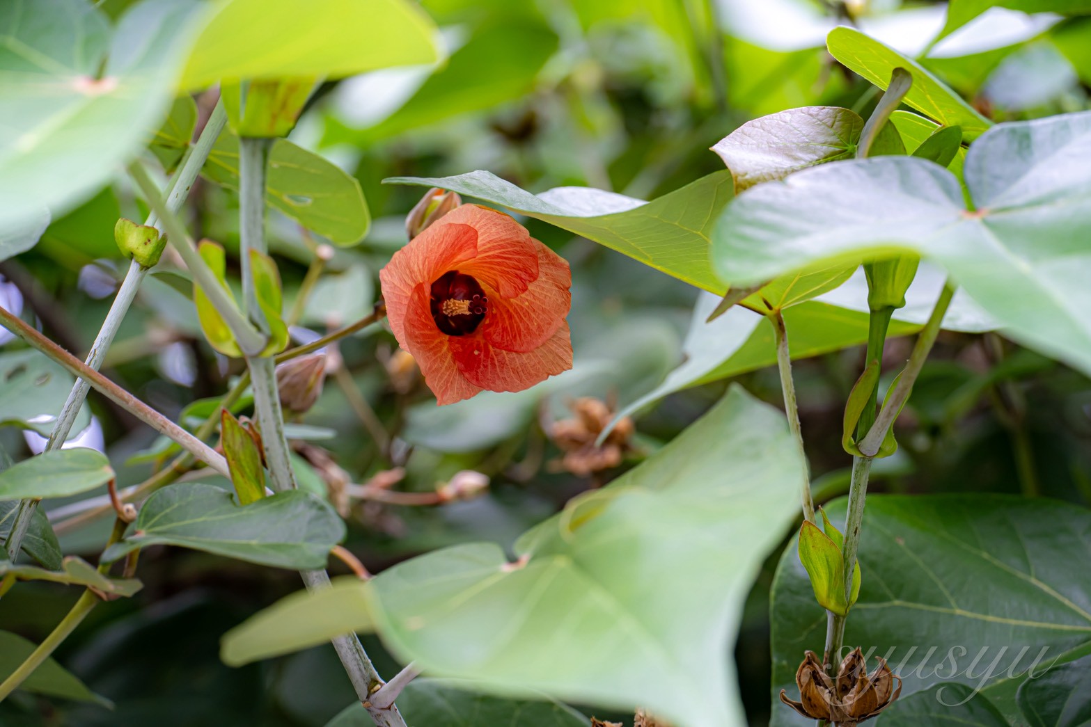 オオハマボウは日本にも自然分布しているハイビスカスの仲間で、沖縄では「ゆうな」、ハワイでは「ハウ」とも呼ばれる。