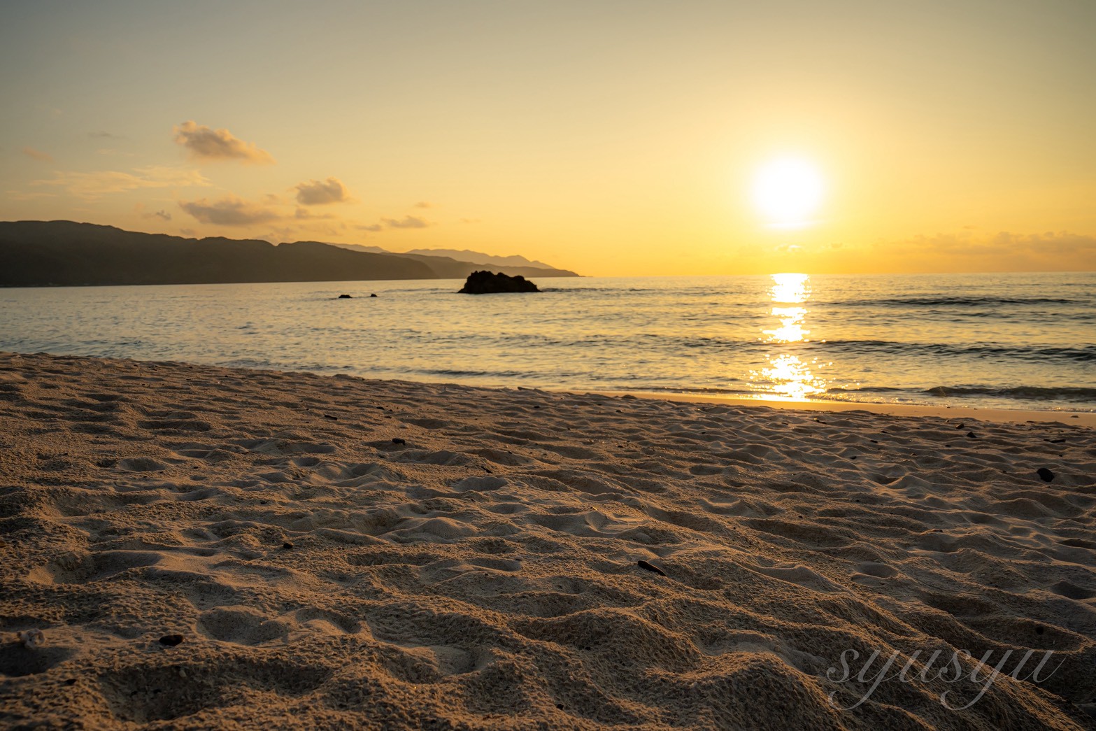 透明度の高い奄美ブルーの海。そしてサンゴ由来の美しい砂浜とこれだけでも絶景なのだが、奄美大島の西側に位置するこのビーチが真に美しいのは夕方のサンセットである。