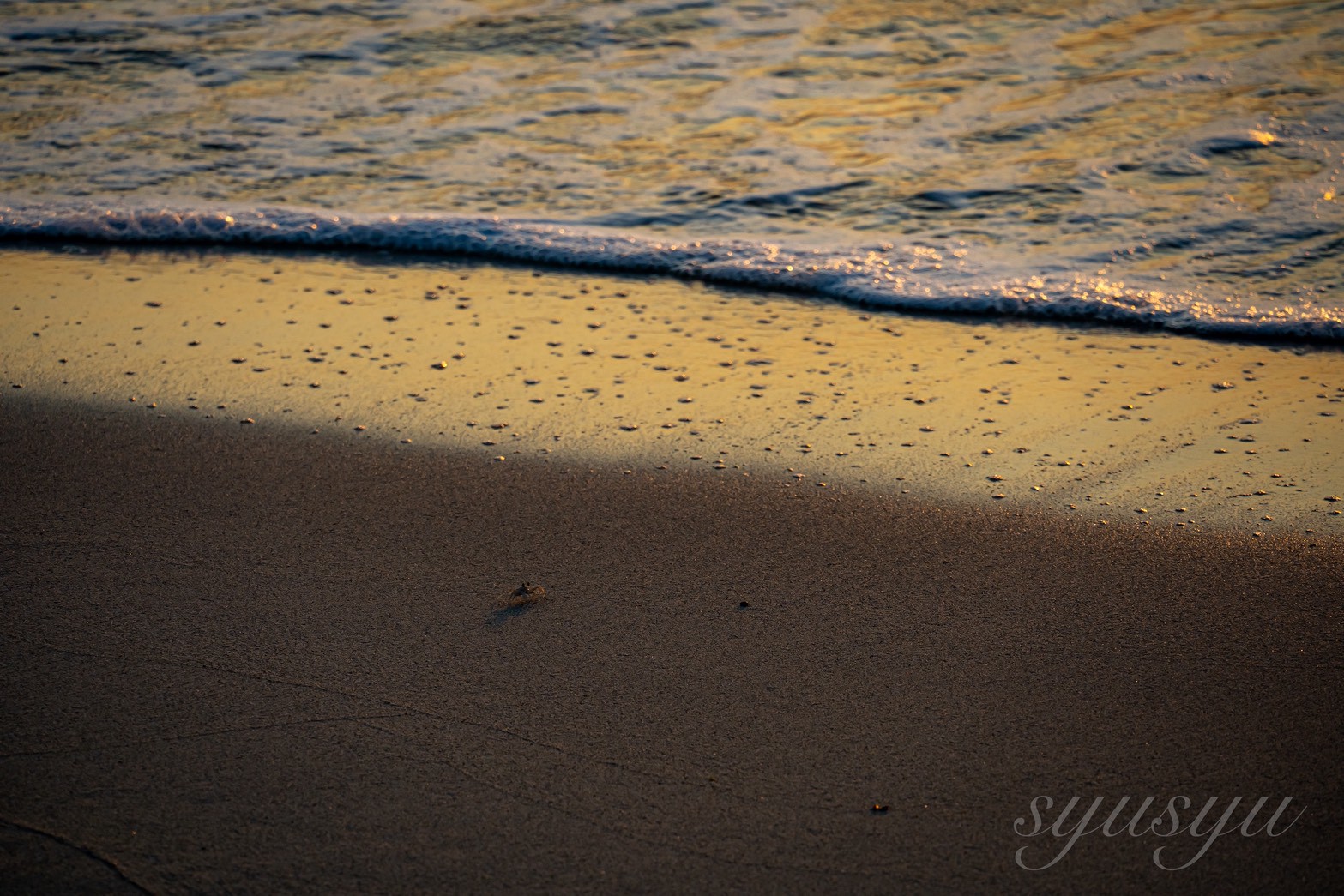オレンジ色の波打ち際には小さなカニが右往左往しながら、打ち寄せる波を避けていた。