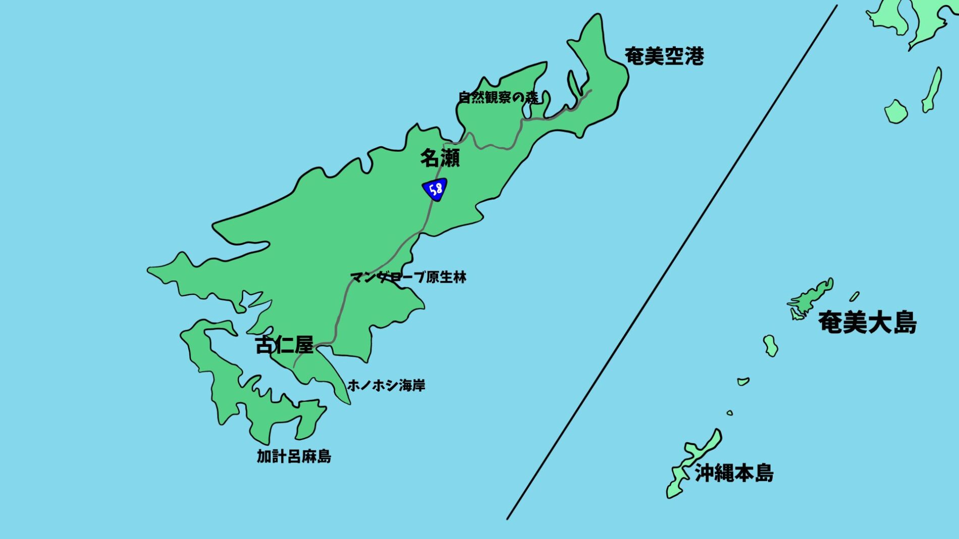 鹿児島本土と沖縄本島のちょうど中間に位置していて、日本では佐渡に次いで5番目に大きい離島。