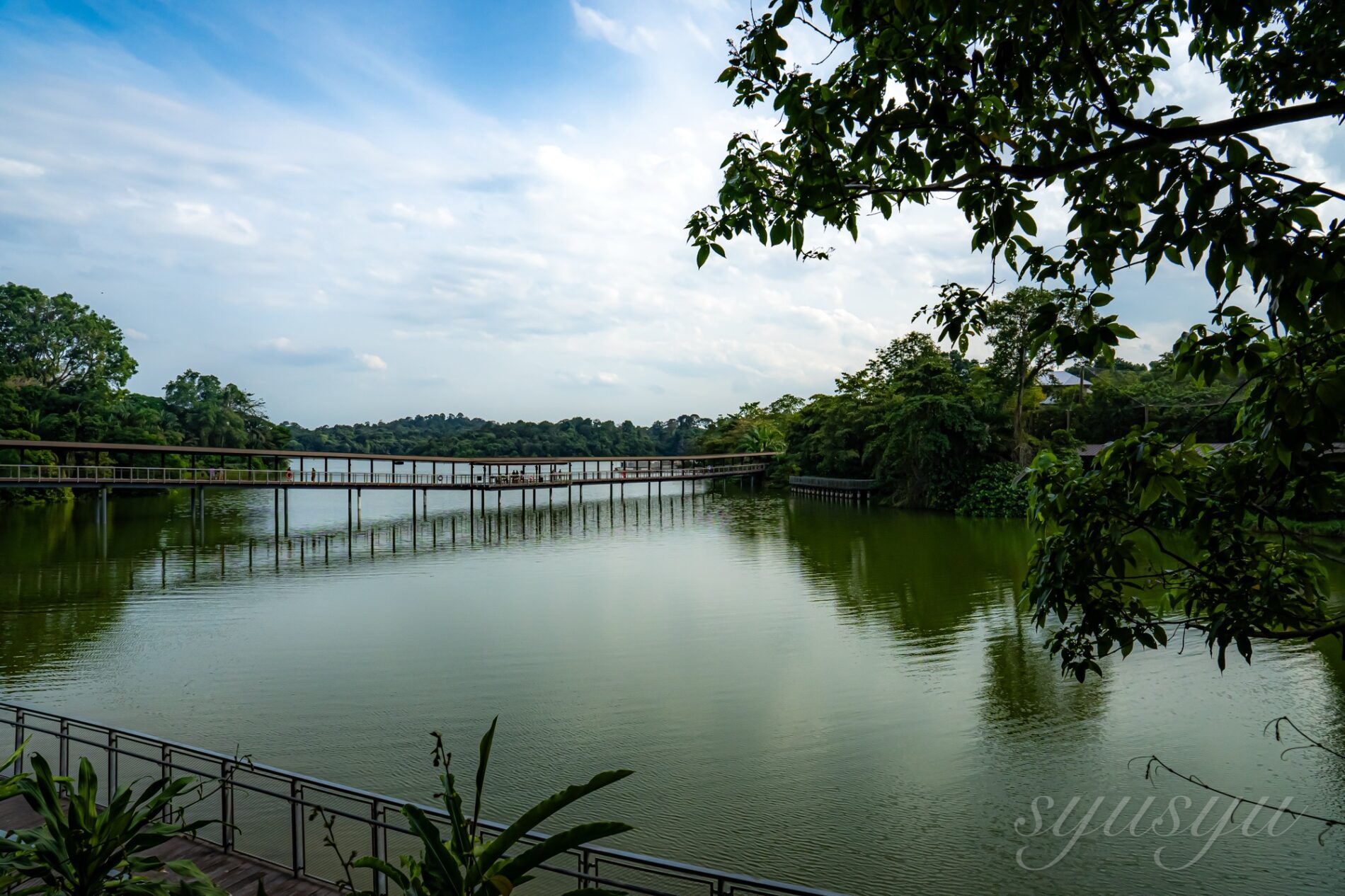 野生の猿も橋を使って湖を渡っていた。湖はアッパー・セレター貯水池といって、小さな国土のシンガポールの貴重な水源の一つ。天然の湖ではなく1920年に建設された人造湖。
