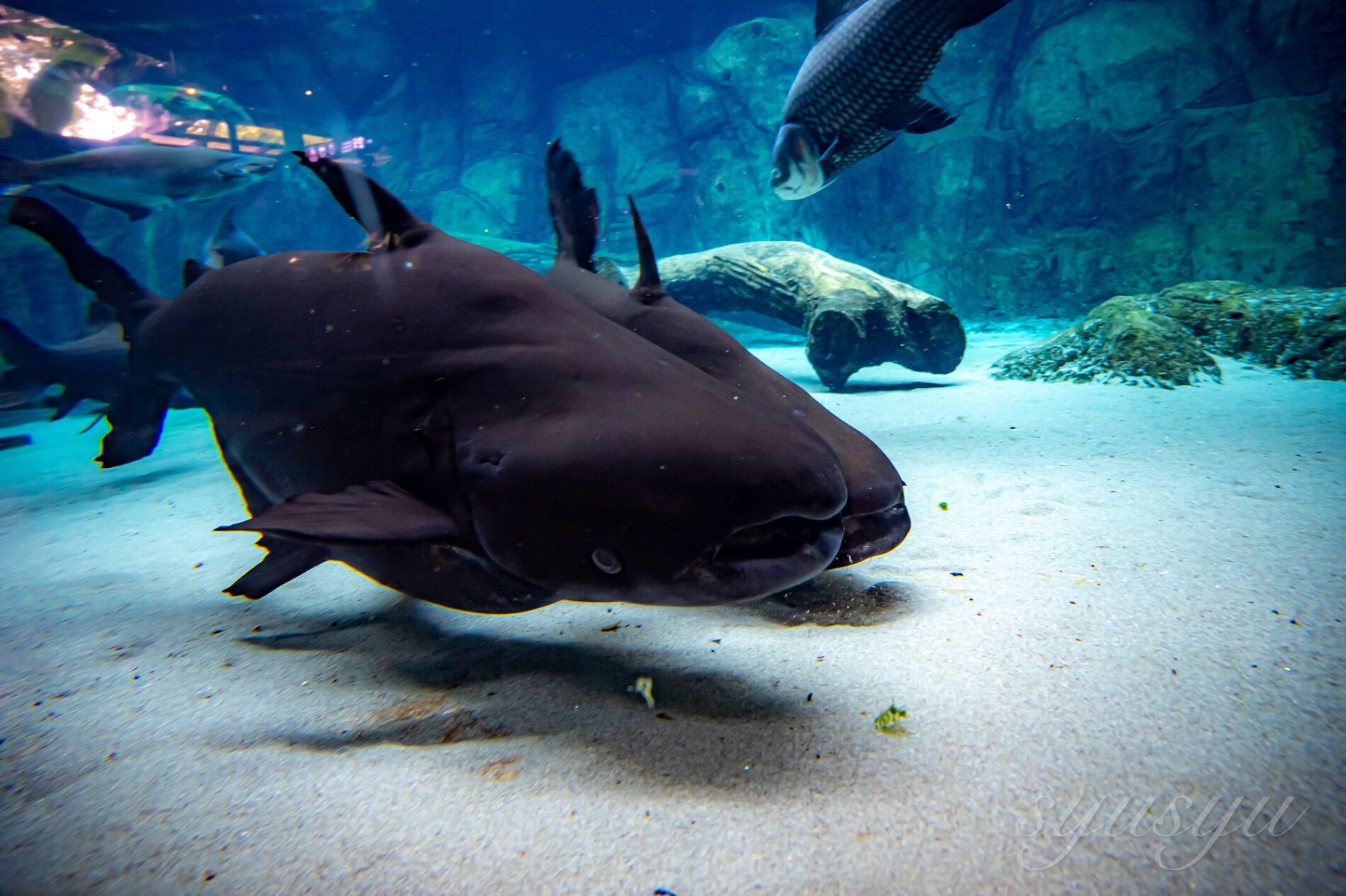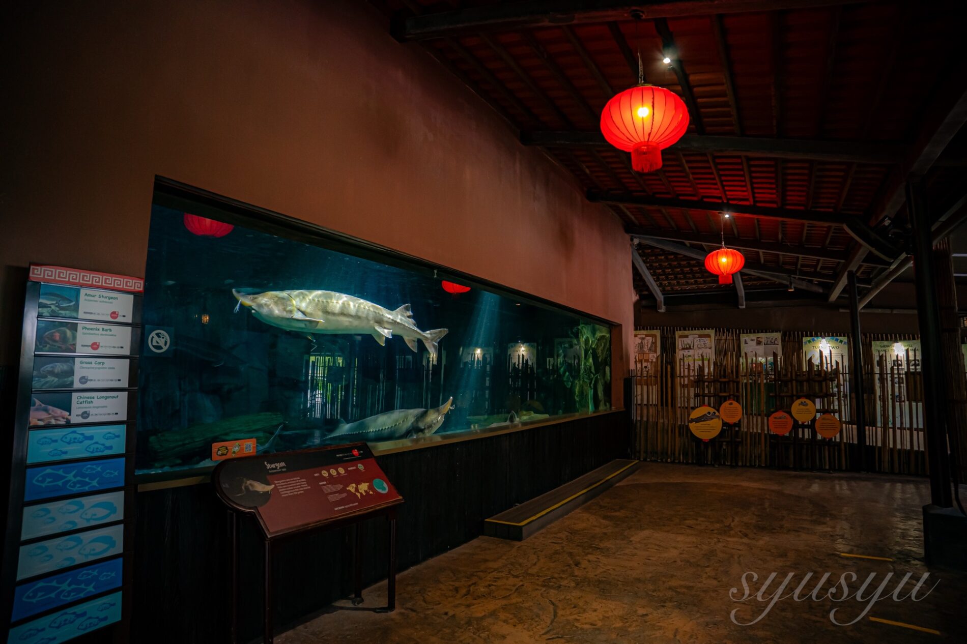 中国エリアのメイン水槽はチョウザメ。サメとは名だけで、実際にはサメとは関係のない硬骨魚類。