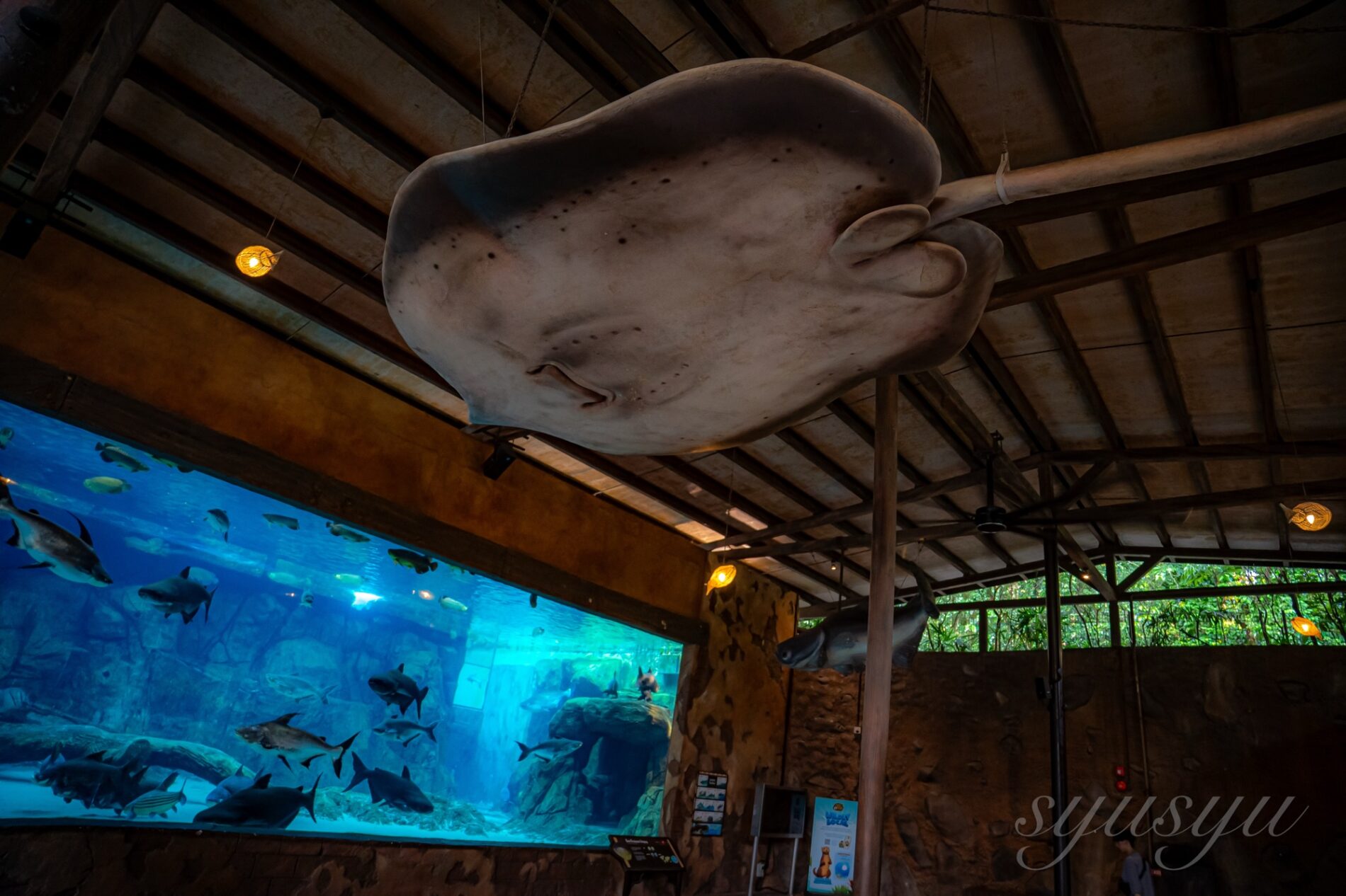 印象的だったのはメコン川の大水槽。日本でも水族館に行くと大抵メインの大水槽があって、中には巨大なサメやエイなんかが悠々と泳いでいたりするのだが、それと同じノリでメコン川の魚が泳いでいる。