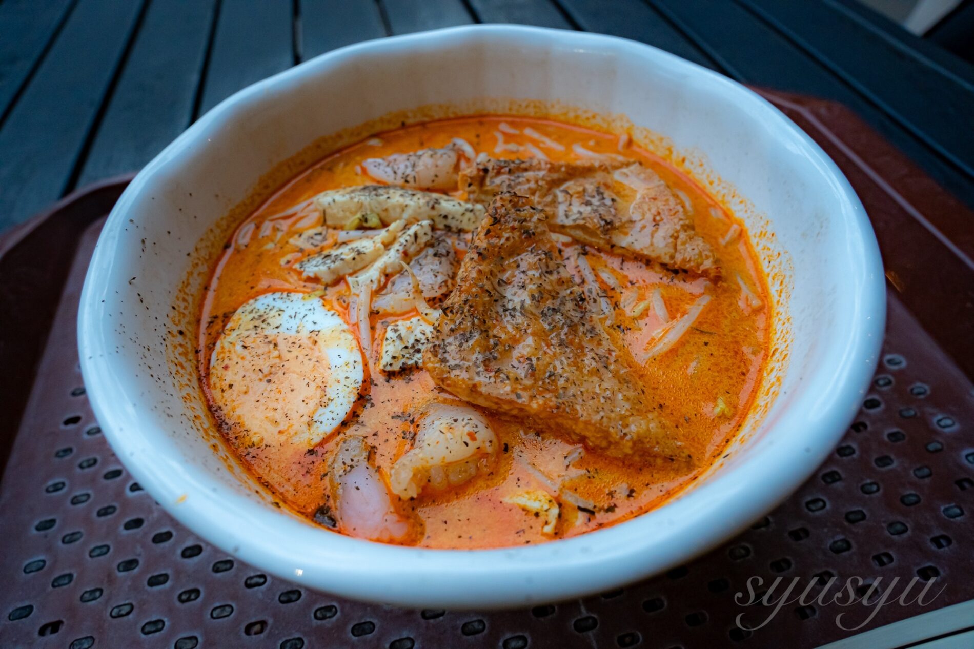 開園してすぐの枠で入場できたが、お腹も空いたしそれなりに人も多くゆっくり回れなそうだったので、まず最初にフードコートで夕食を食べてしまうことにした。シンガポールの麺料理、ラクサ。動物園内は物価が高く、これで13.9SGD。