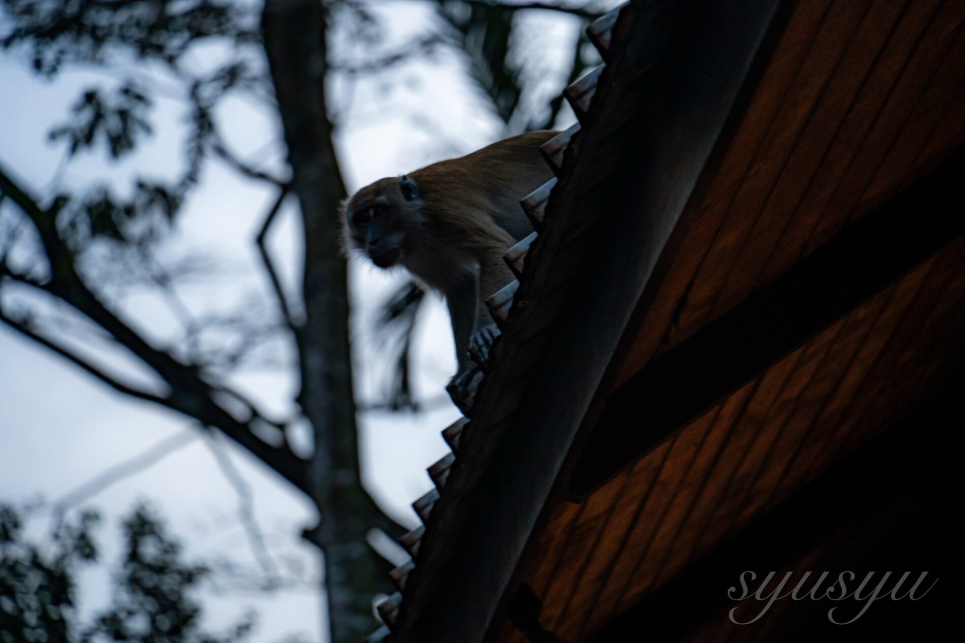 フードコートに野生の猿が乱入。すぐにスタッフが飛んできて棒を打ち鳴らして追い返していた。