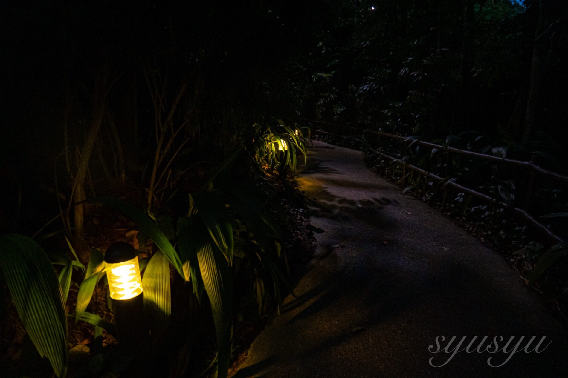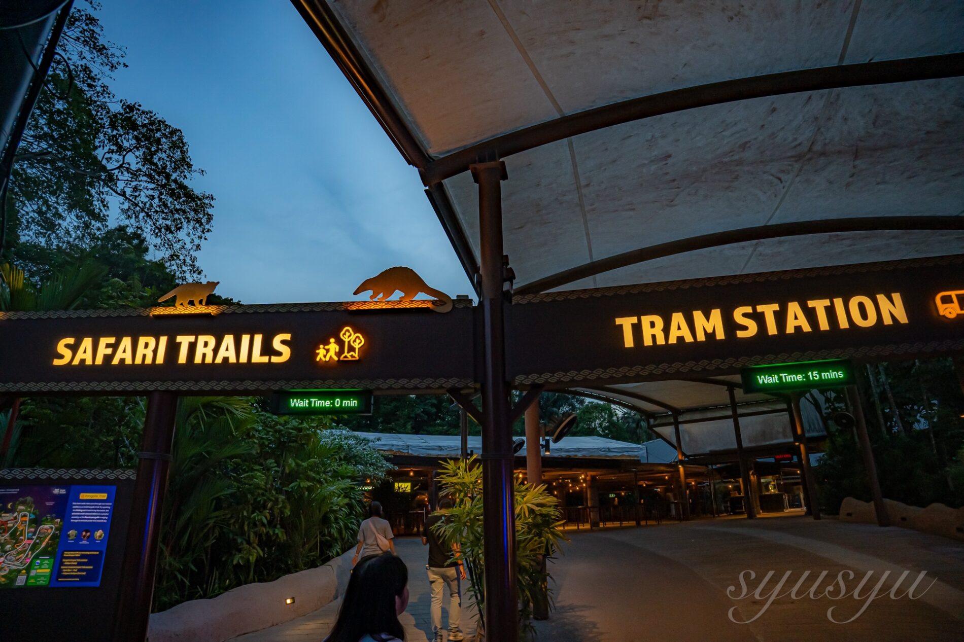 ナイトサファリはその名の通り夜の動物園。夜しか営業しない動物園というのは世界で初めてだそうで、営業時間は19時から24時。前売り券の購入時に入場時間の枠を指定する必要があるが、今回訪問時は平日で比較的空いていたので、数日前に予約したが余裕で一番早い枠が予約できた。