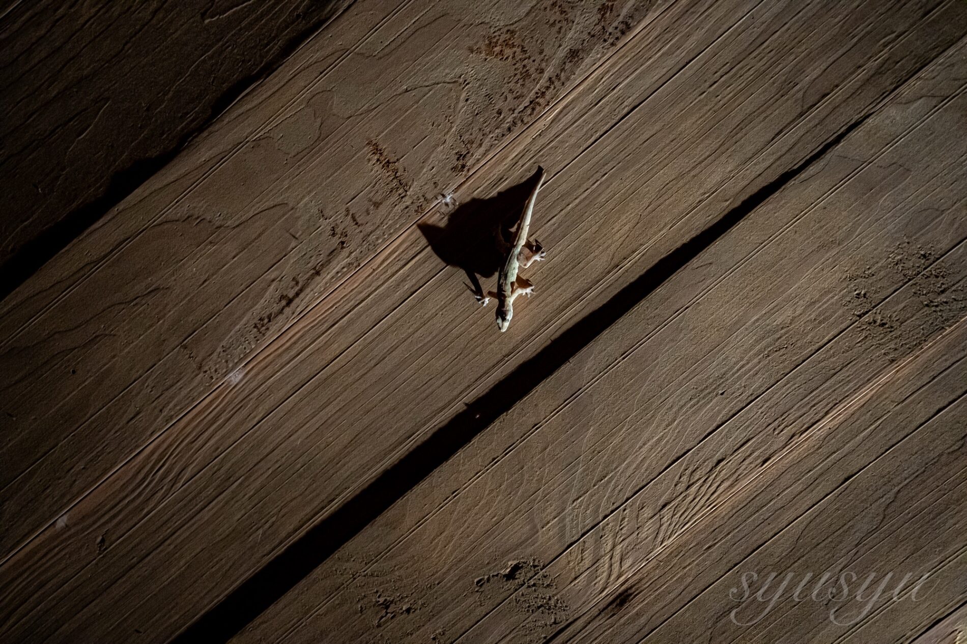 休憩所の屋根にはハウスゲッコーが張り付いていた。