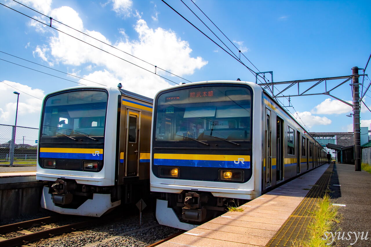銚子まではJR総武線でアクセスします。千葉駅からは2時間弱の道のり。のんびり田園風景を眺めながら列車に揺られて過ごす。