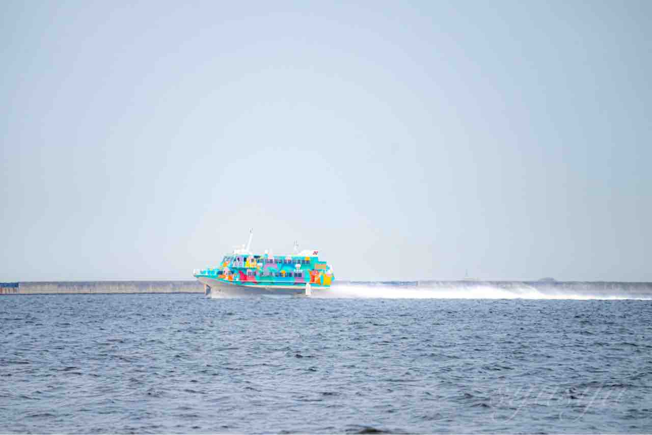 伊豆諸島への旅でいつもお世話になっている東海汽船のジェット船。伊豆大島から竹芝に帰ってきた便であろうセブンアイランド 友。