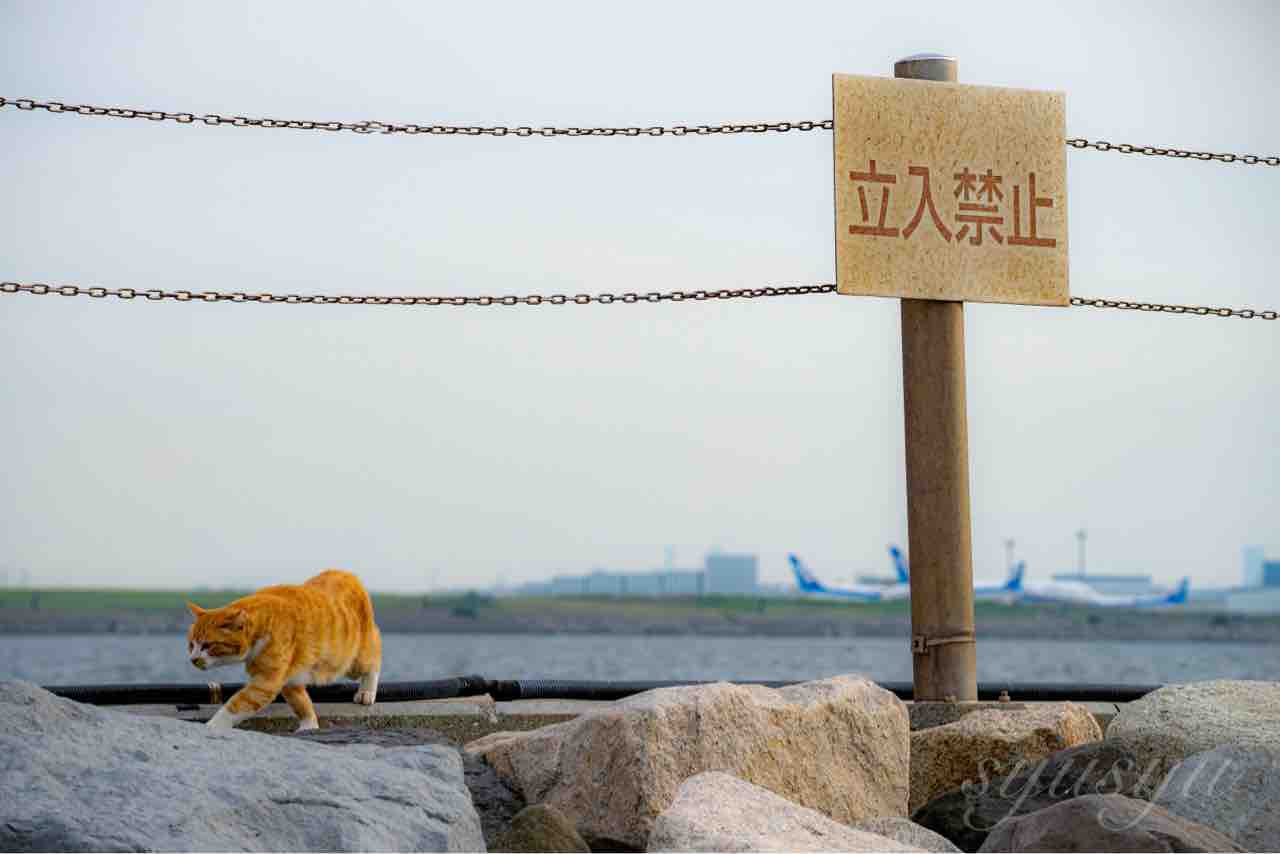 勇猛果敢にも立ち入り禁止の中に突入していく猫。